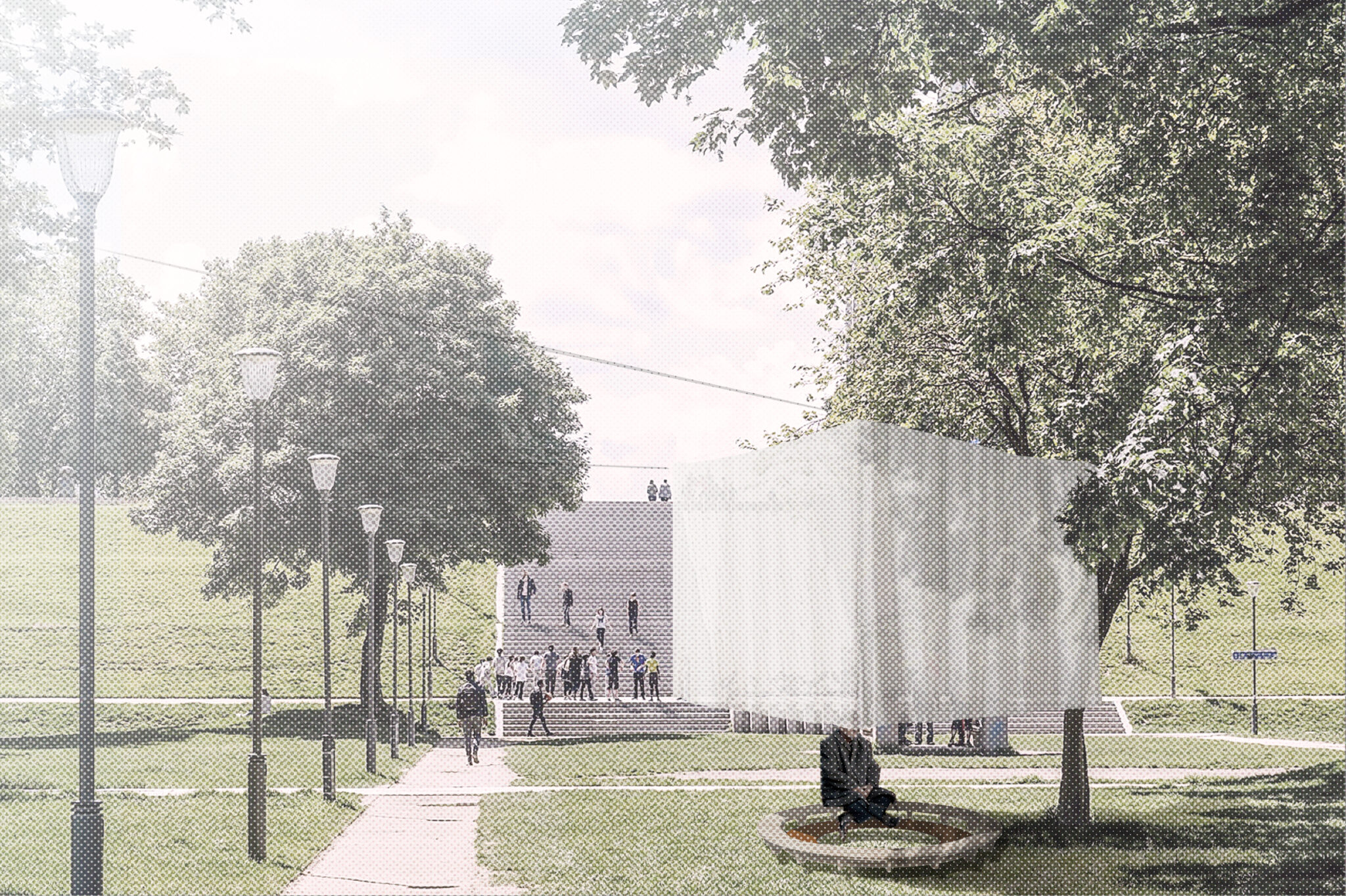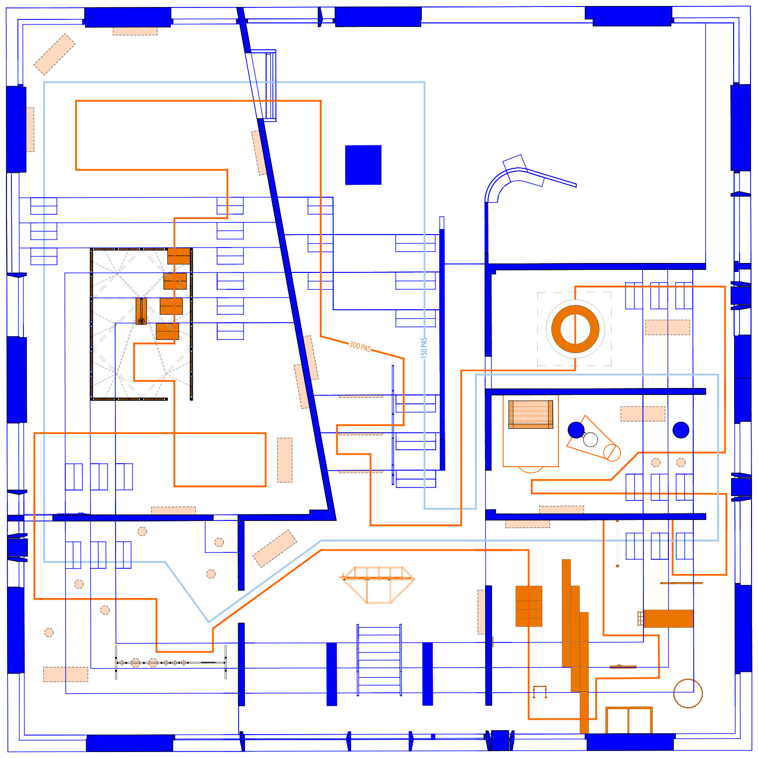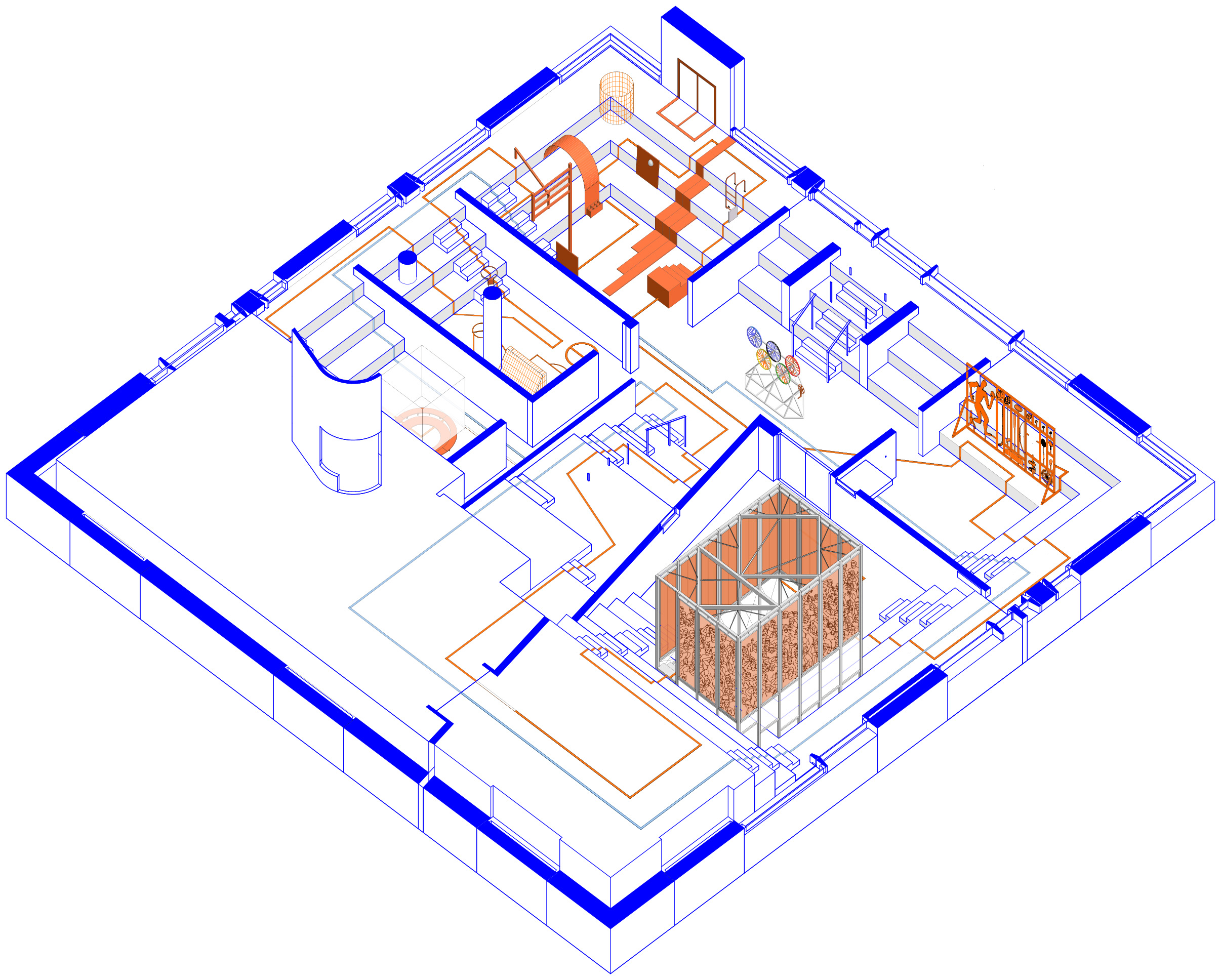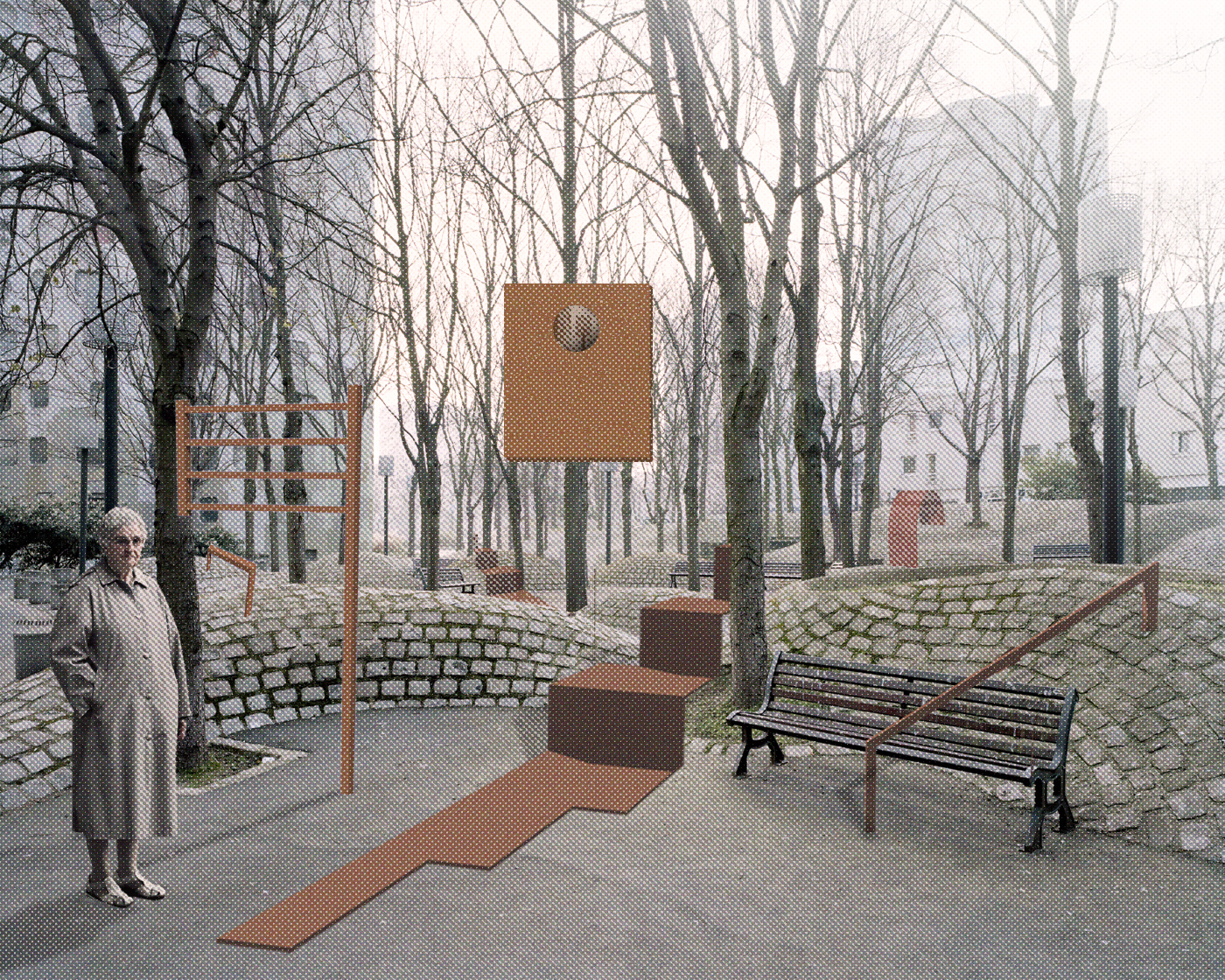 Le projet met en récit et en scène une proposition d’exposition sur « Le sport dans la ville de demain » proposée par le site Le Corbusier à Firminy en 2022. L’enjeu est de s’approprier le sujet et de l’interpréter au travers d’une exposition et la conception de ses installations artistiques dans le centre culturel du Site Firminy. Cette scénographie présente le récit collectif qu’est et doit devenir le sport dans la ville, de ses joies et ses urgences sociétales. Certains dispositifs sont des représentations, symbologies et hommages, d’autres des interrogations vers une histoire collective qui a besoin d’être visionnaire. Ce projet d’exposition parle de célébration collective, de fête, de l’individu face aux infrastructures, de poésie urbaine, d’urgence et de repos.