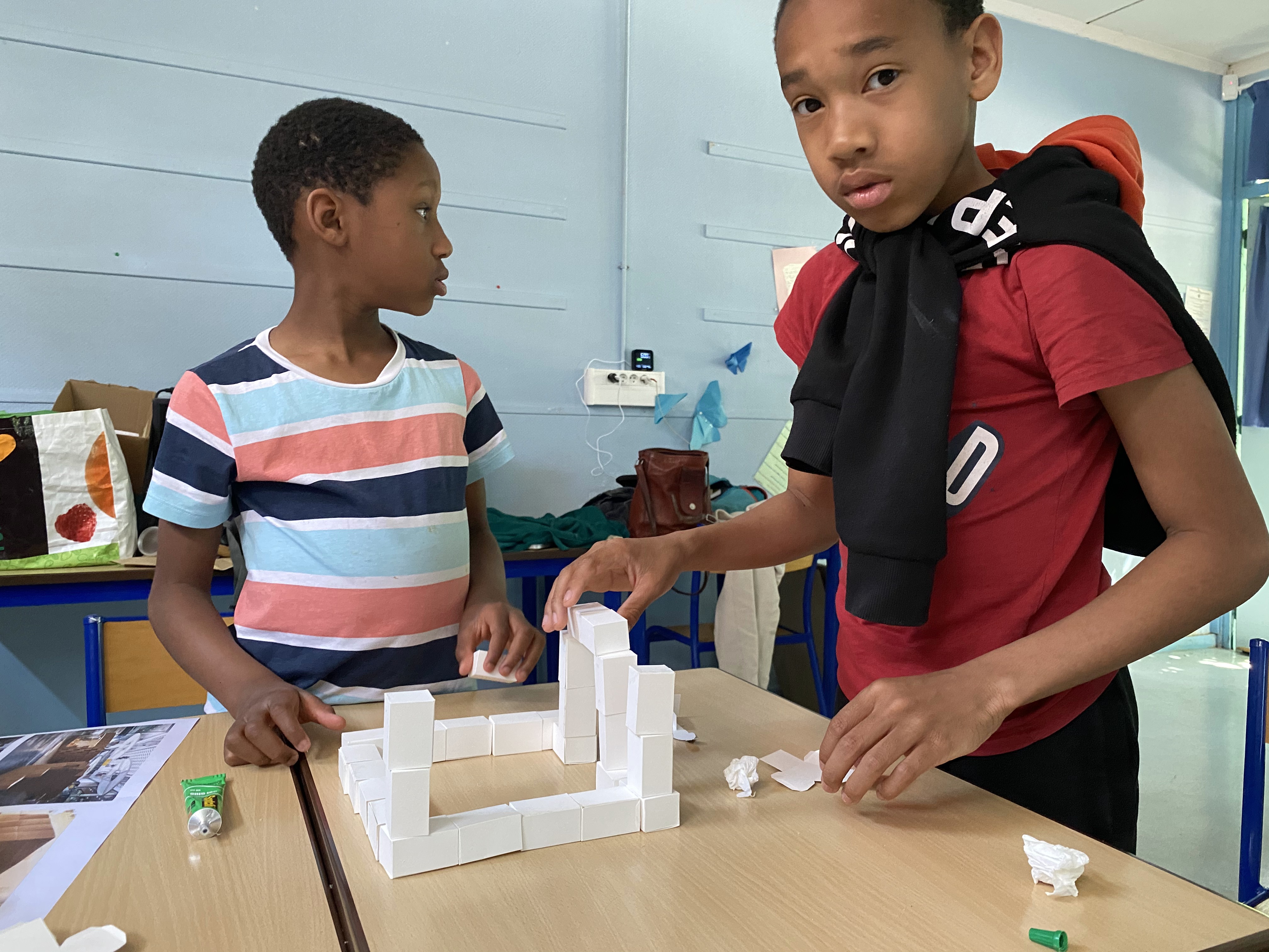Au travers d’une super-œuvre collective, les élèves de CM1 et CM2 ont été invités à construire une utopie participative et architecturée ; ils ont imaginé et œuvré tout au long du projet un dialogue entre art et architecture à échelle 1:1, restitué sous forme d’un court métrage les invitant à expérimenter cet objet-ville à travers un scénario collectif imaginé par eux-mêmes et dans lequel ils deviennent acteurs.
