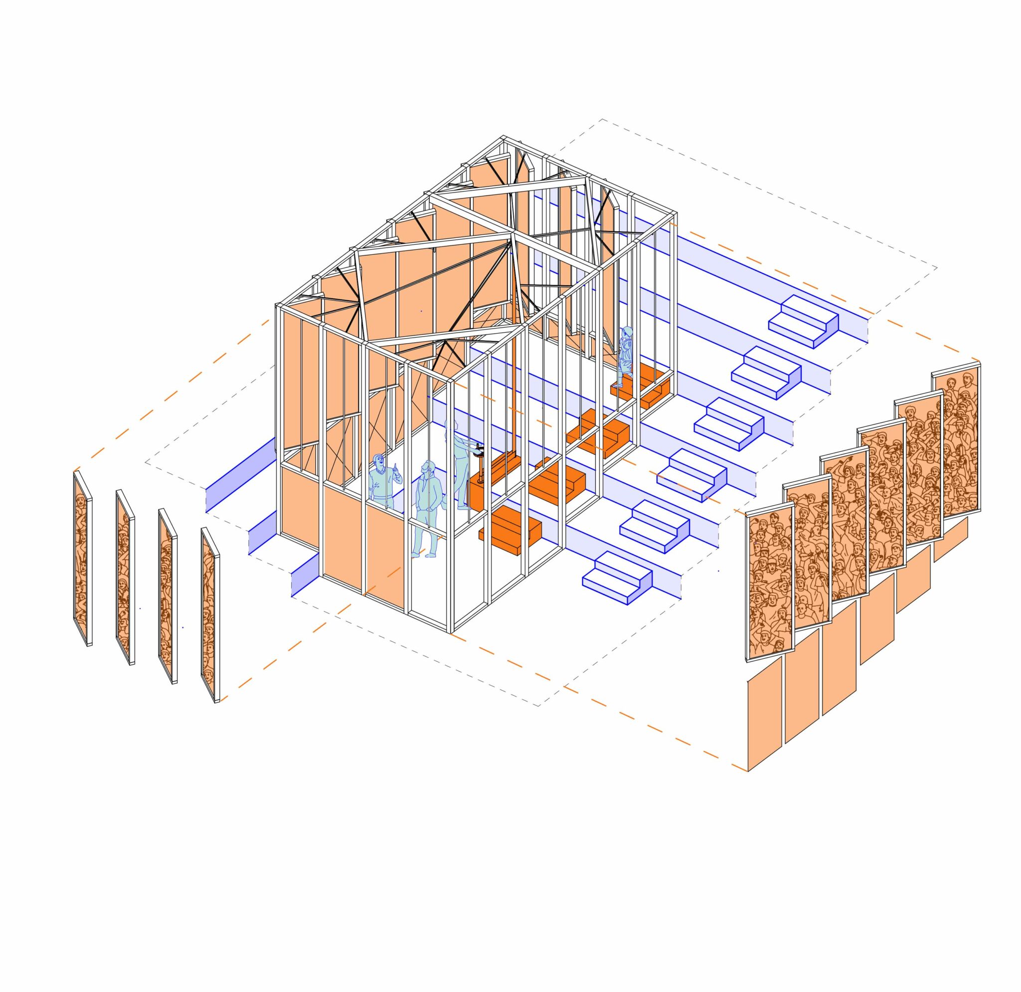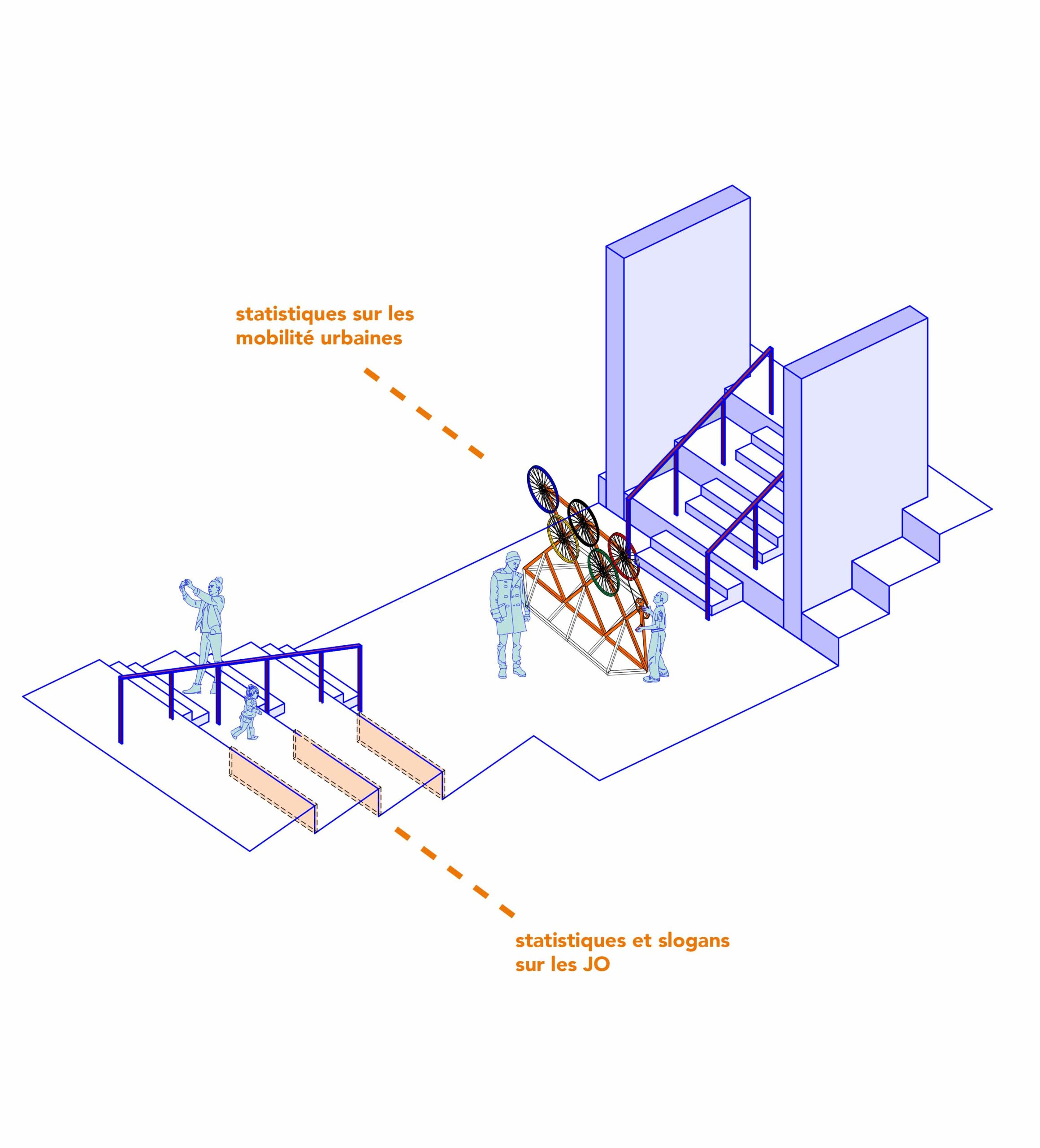 Le projet met en récit et en scène une proposition d’exposition sur « Le sport dans la ville de demain » proposée par le site Le Corbusier à Firminy en 2022. L’enjeu est de s’approprier le sujet et de l’interpréter au travers d’une exposition et la conception de ses installations artistiques dans le centre culturel du Site Firminy. Cette scénographie présente le récit collectif qu’est et doit devenir le sport dans la ville, de ses joies et ses urgences sociétales. Certains dispositifs sont des représentations, symbologies et hommages, d’autres des interrogations vers une histoire collective qui a besoin d’être visionnaire. Ce projet d’exposition parle de célébration collective, de fête, de l’individu face aux infrastructures, de poésie urbaine, d’urgence et de repos.